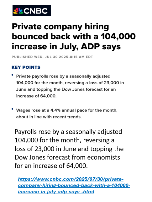 ADP uses actual payroll data from over 25 million employees across its client base, adjusted for seasonality and weighted to reflect national trends. . . . (covering about 20% of private-sector employees) . . .