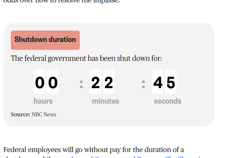 Government shutdowns are such a no show. They all end up getting paid. If you want it to hurt do it like how us in the private sector would be hit, no work no pay.