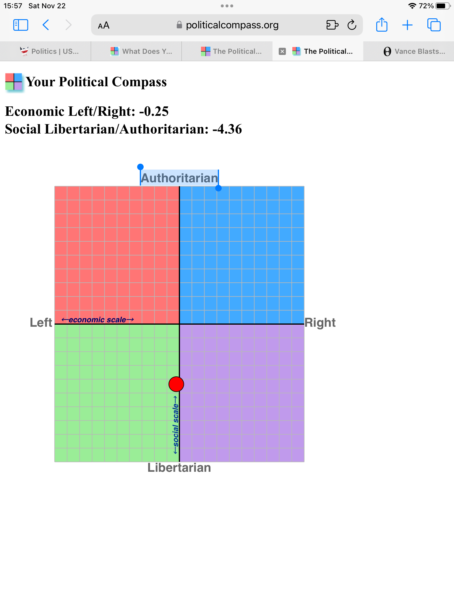 I’ve been a fan of The Political Compass test going back to its beginnings 25 years ago. I’ve discussed it at length on liberal forums and had members in those forums take the test. It has been discussed multiple times in this forum, going back before the reset.